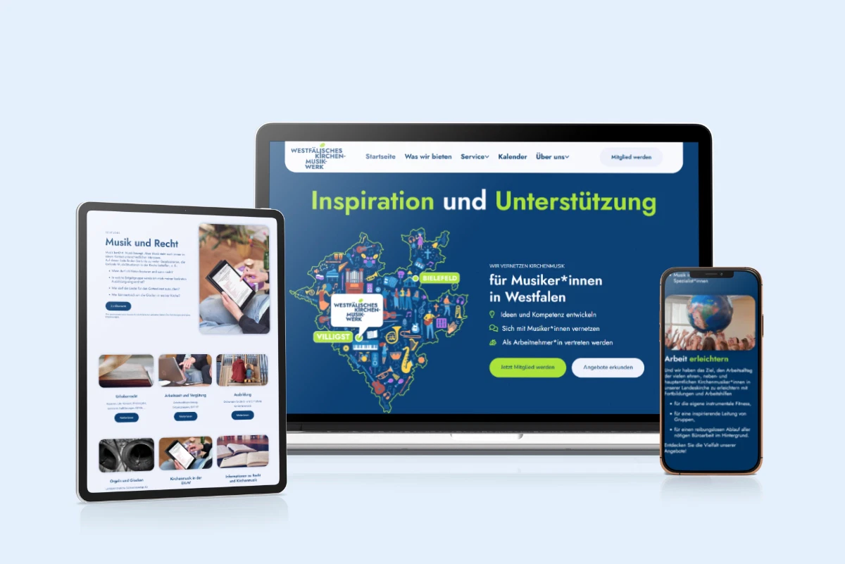 Das Kirchenmusikwerk wurde zu Marke und Logo beraten und hat ein komplett eigenes Design für seine Webseite in ChurchDesk bekommen.